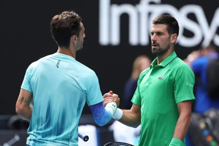 喬科維奇在八強賽的對手是義大利小將穆薩提 (Lorenzo Musetti)。穆薩提在比賽中表現出色,先以 6 比 4、6 比 3 拿下前兩盤,取得領先優勢。然而,在第三盤進行到 3 比 1 時,穆薩提因傷宣布退賽,讓喬科維奇不戰而勝,晉級四強。這場比賽充滿戲劇性,喬科維奇在面臨淘汰邊緣時,幸運地獲得晉級機會。